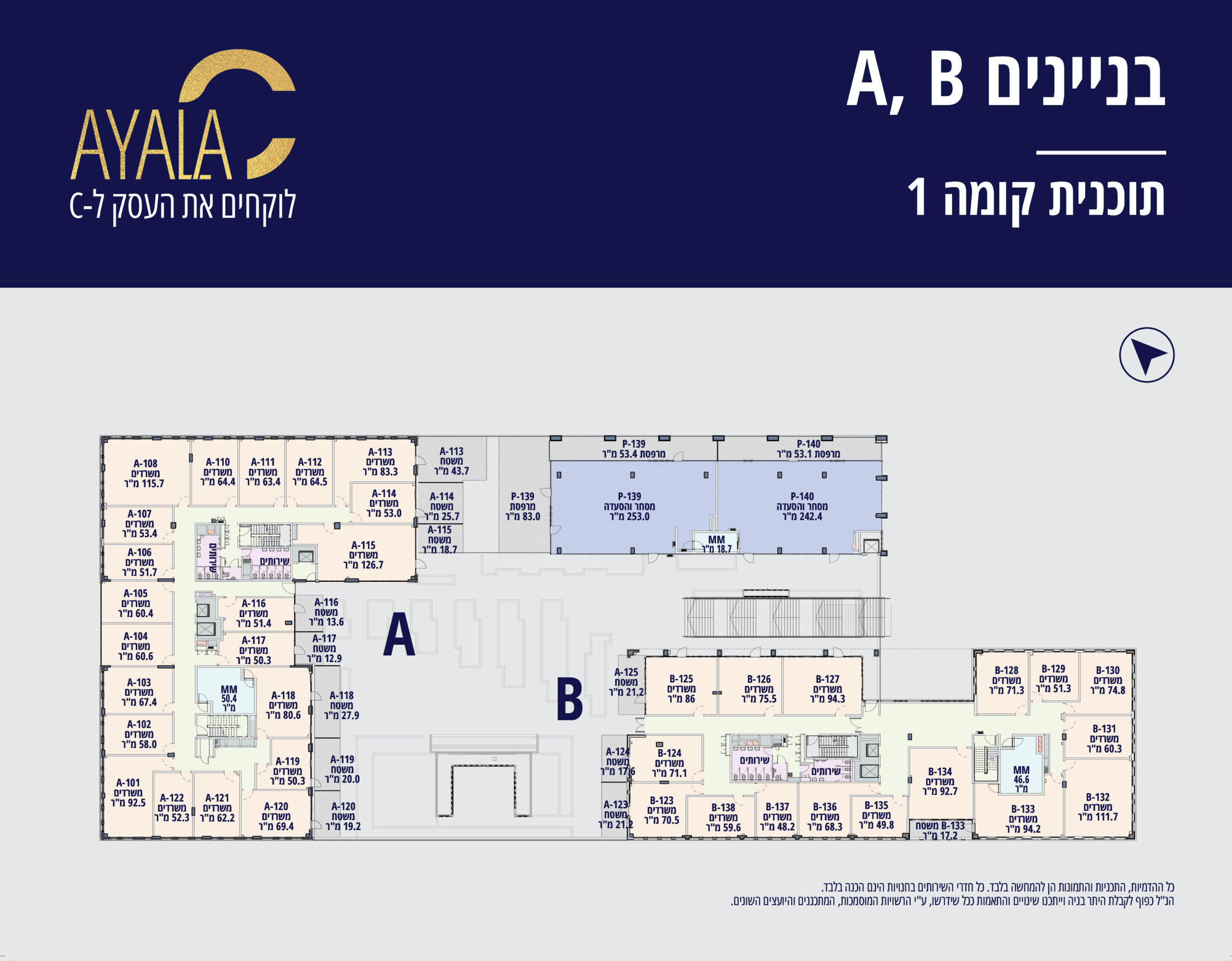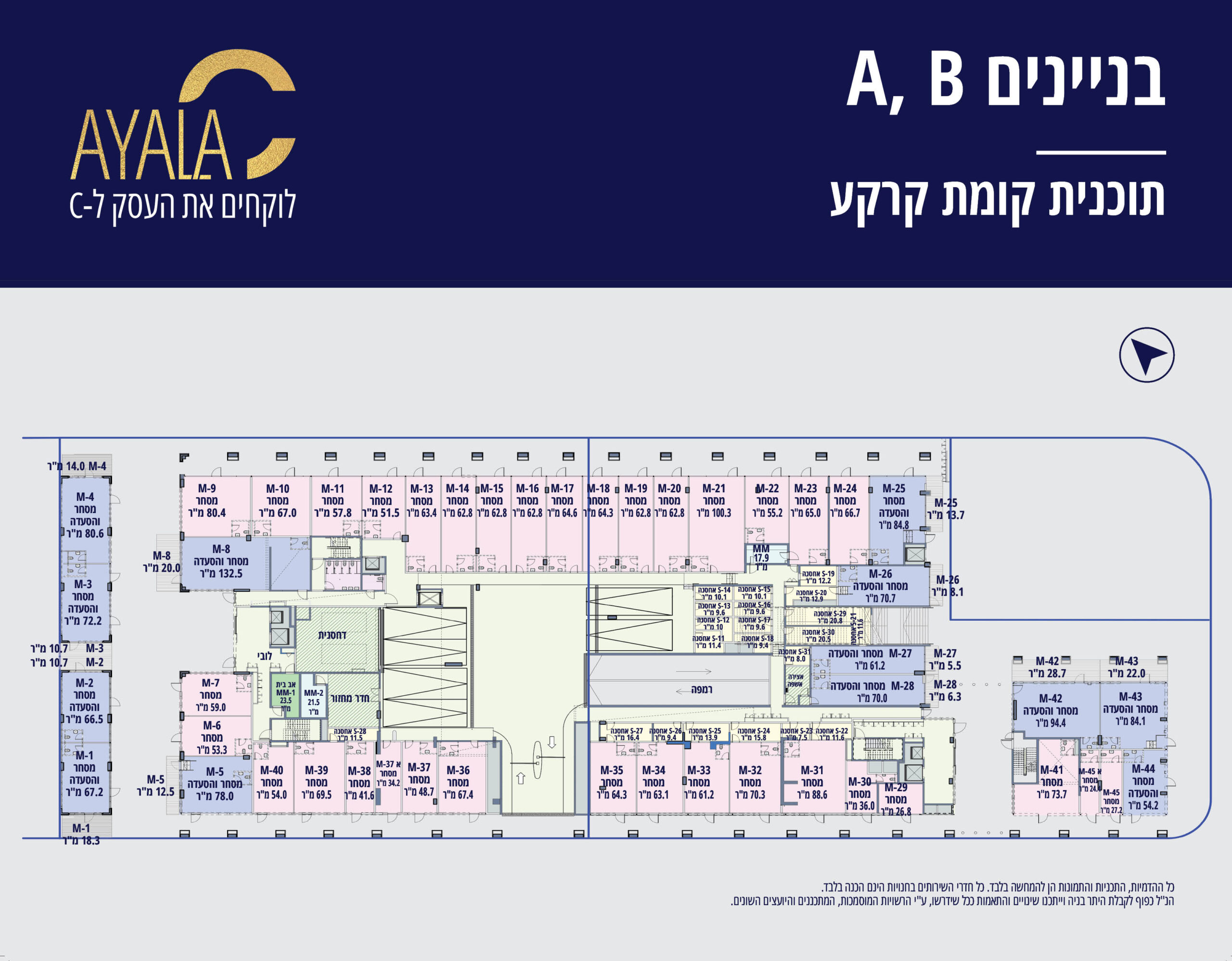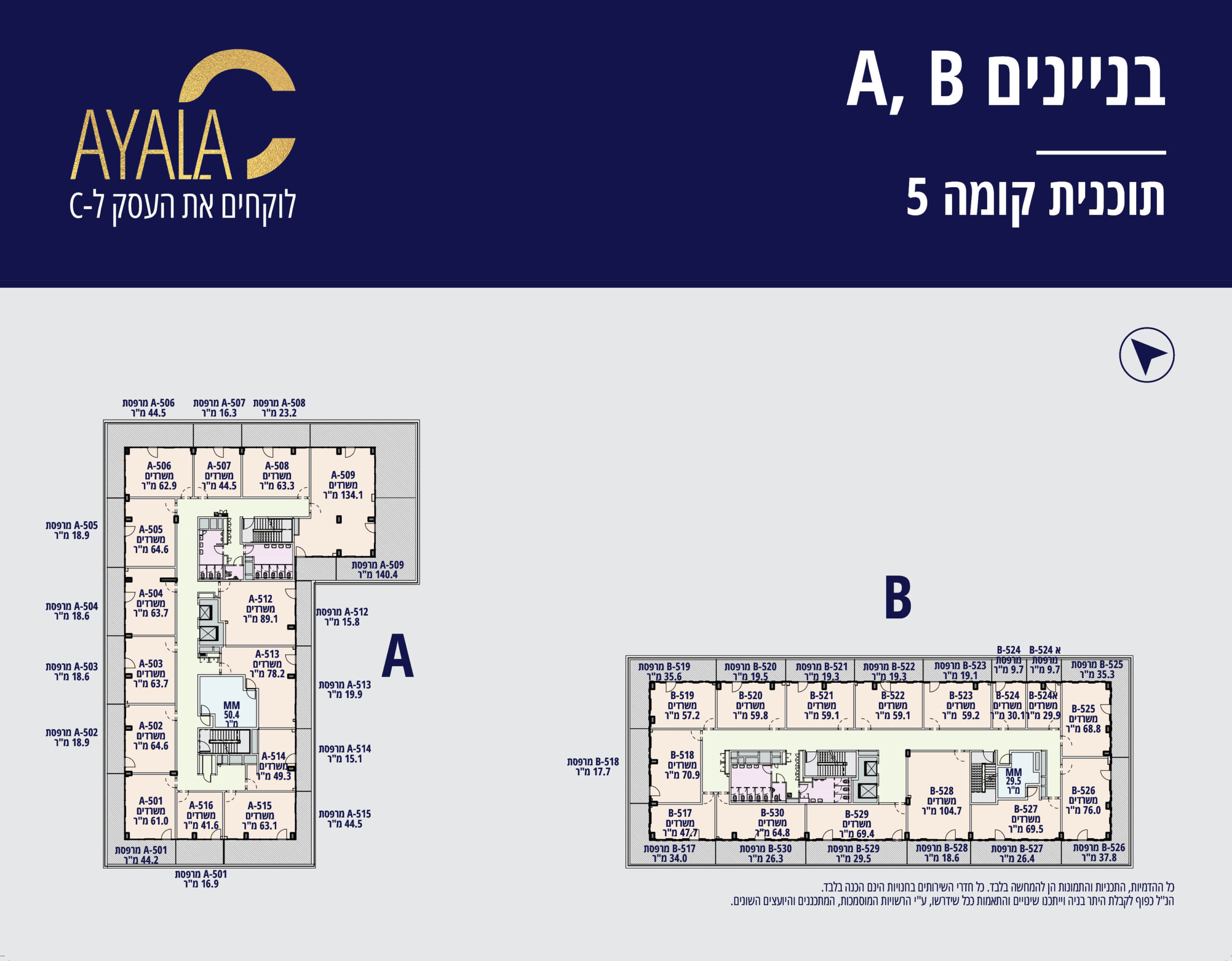 בכל בניין קומת מסחר ומעליה 5 קומות משרדים