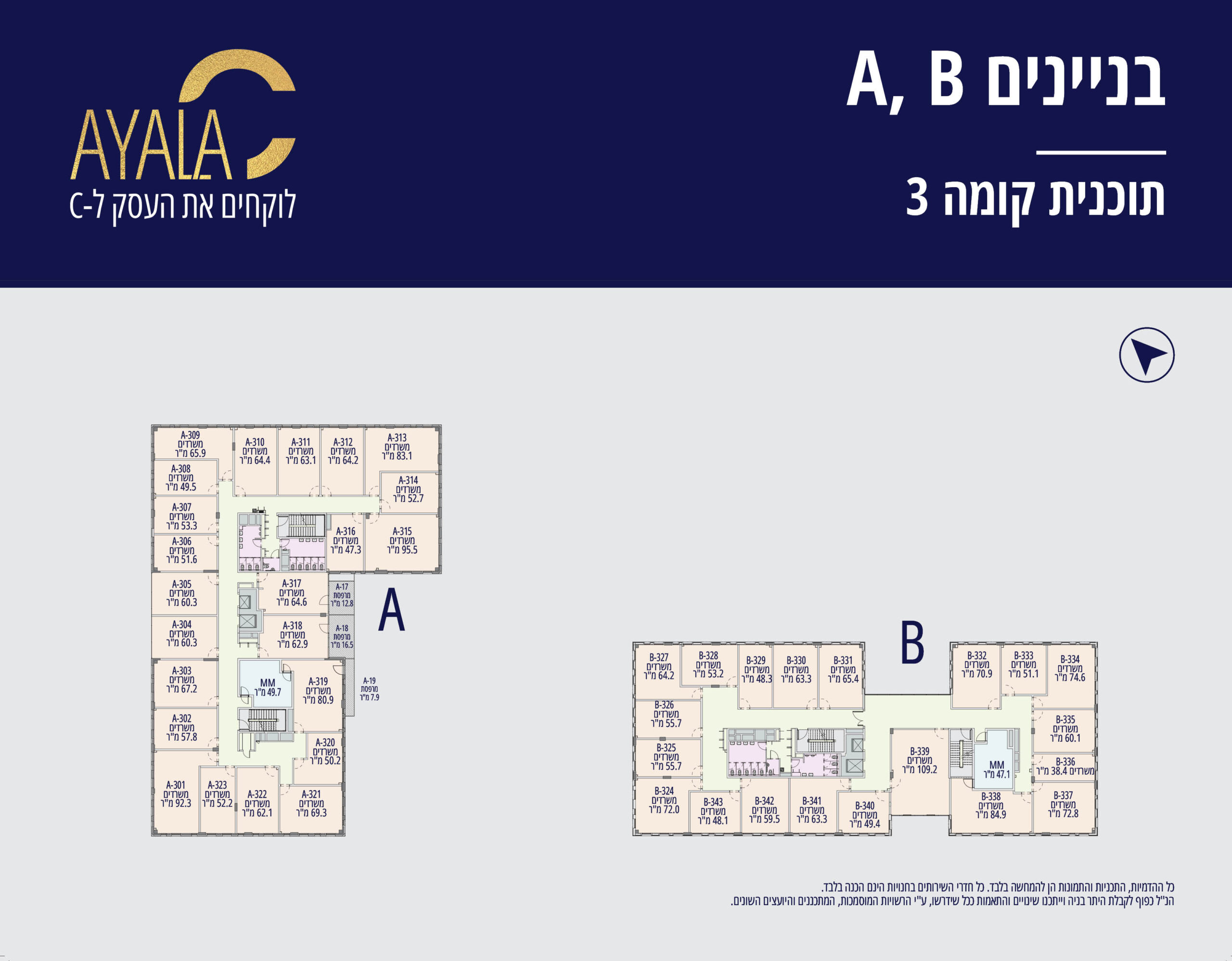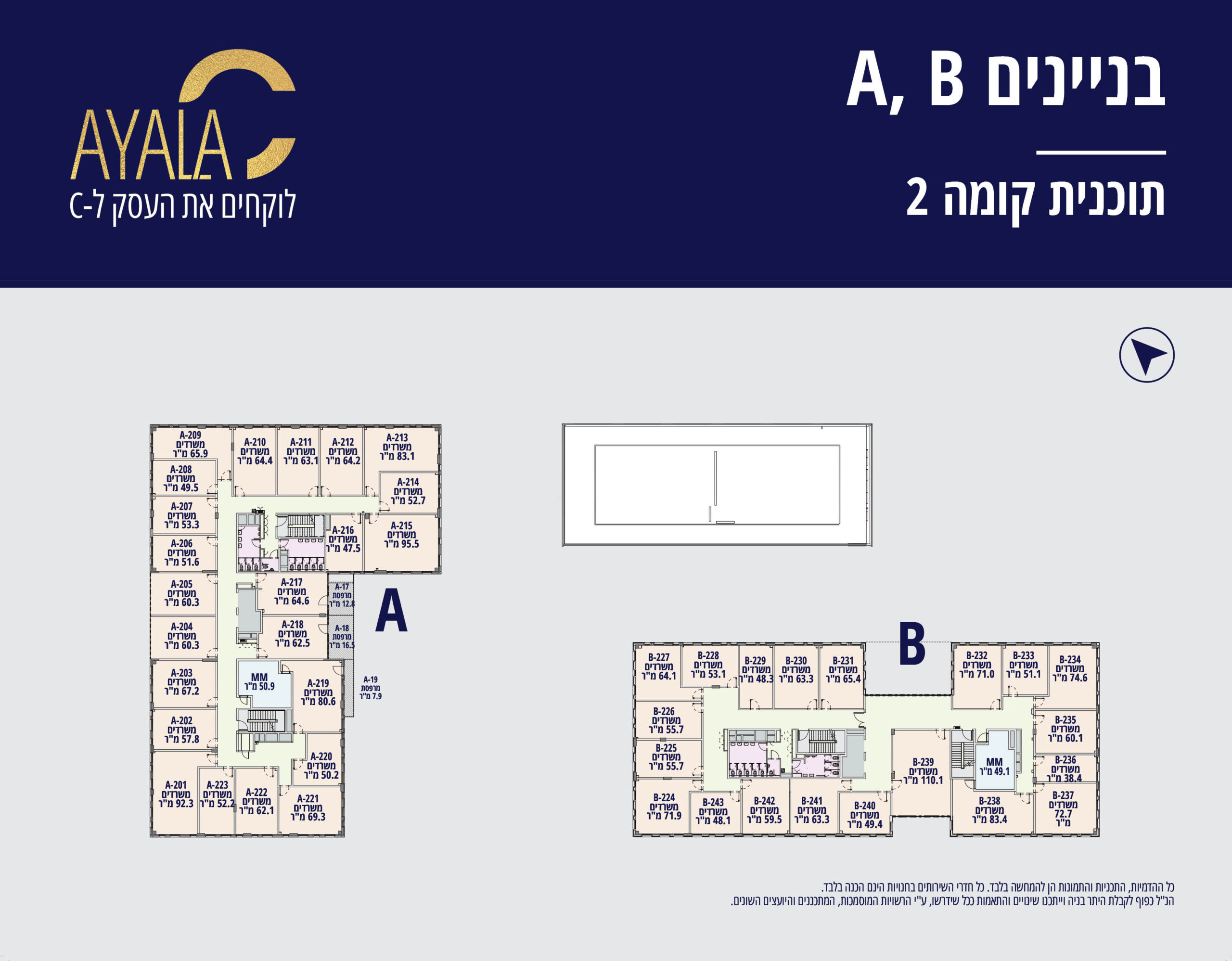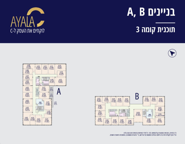 בכל בניין קומת מסחר ומעליה 5 קומות משרדים
